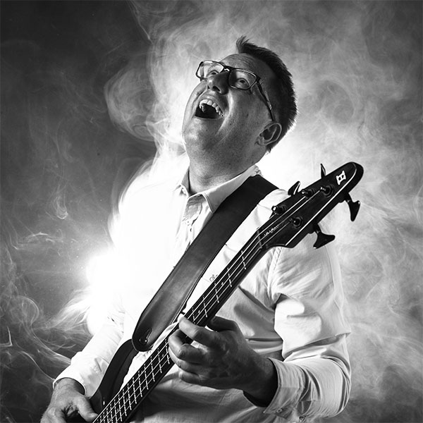 der Base-Man der mit seinen vier Saiten die Erde erbeben und gelegentlich das Sax aufheulen lässt